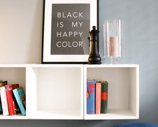 Der durch die Lage im Erdgeschoss und die Ausrichtung nach Norden eher dunkle Innenraum wurde durch das Farbkonzept und die Auswahl der Möbel optisch aufgehellt. Der offen gestaltete Grundriss erhält durch die Möblierung und den dekorativen Design-Raumteiler nun eine sinnvolle Struktur, wodurch auf engstem Raum vollwertige und wohnliche Aufenthaltsräume entstehen.